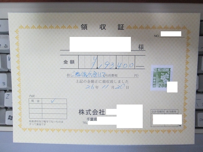 葬儀社さん 領収書