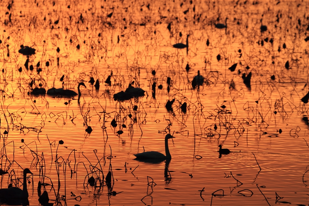 湖面に白鳥の影