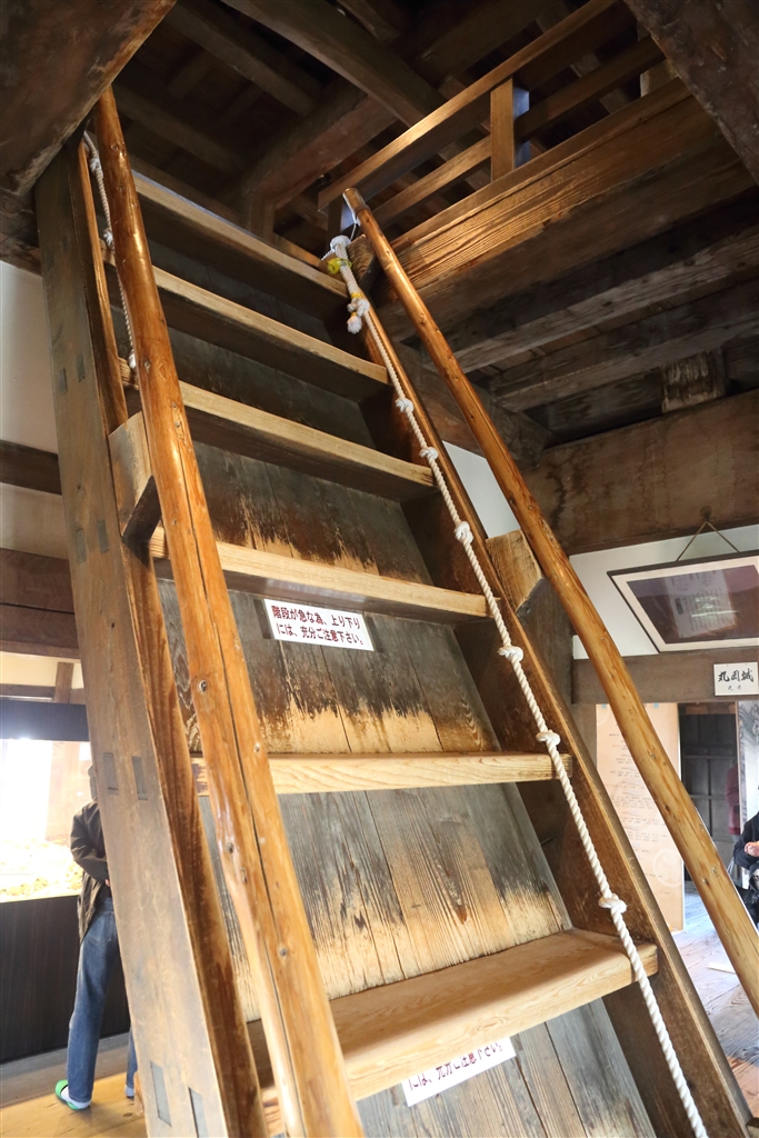 急な階段、上り下りの補助に綱があります