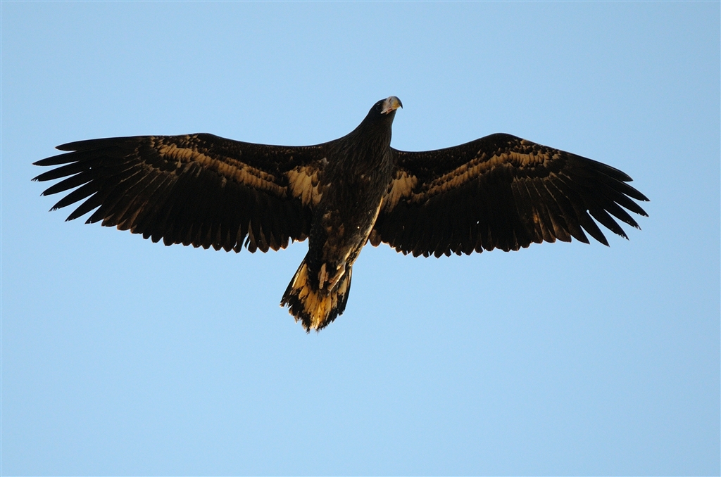 オオワシ幼鳥、シグマ。 眉毛(?)と脚も白いです。