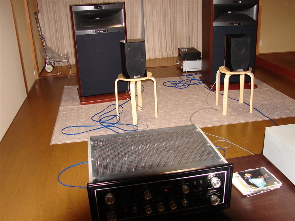 暫定的スタンドに木製チェアー。