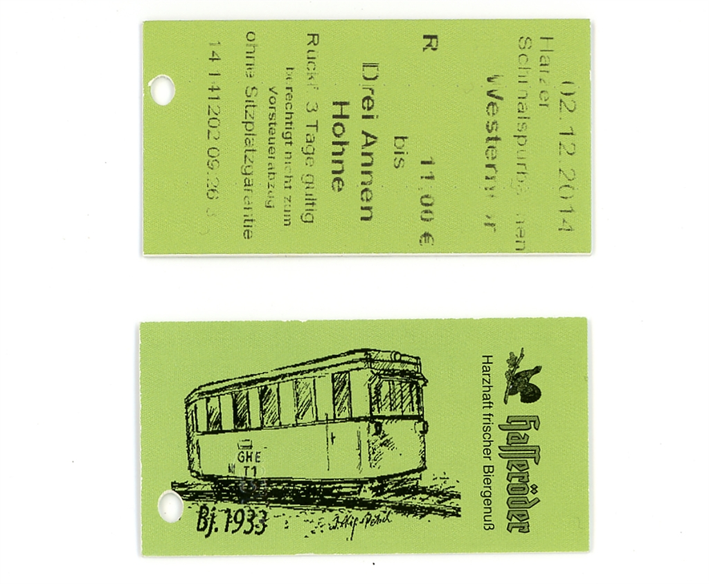 ハルツ狭軌鉄道の乗車券