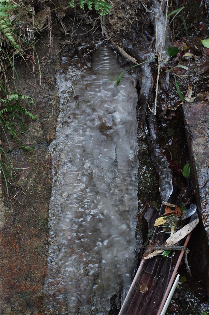 岩肌にへばり付く氷