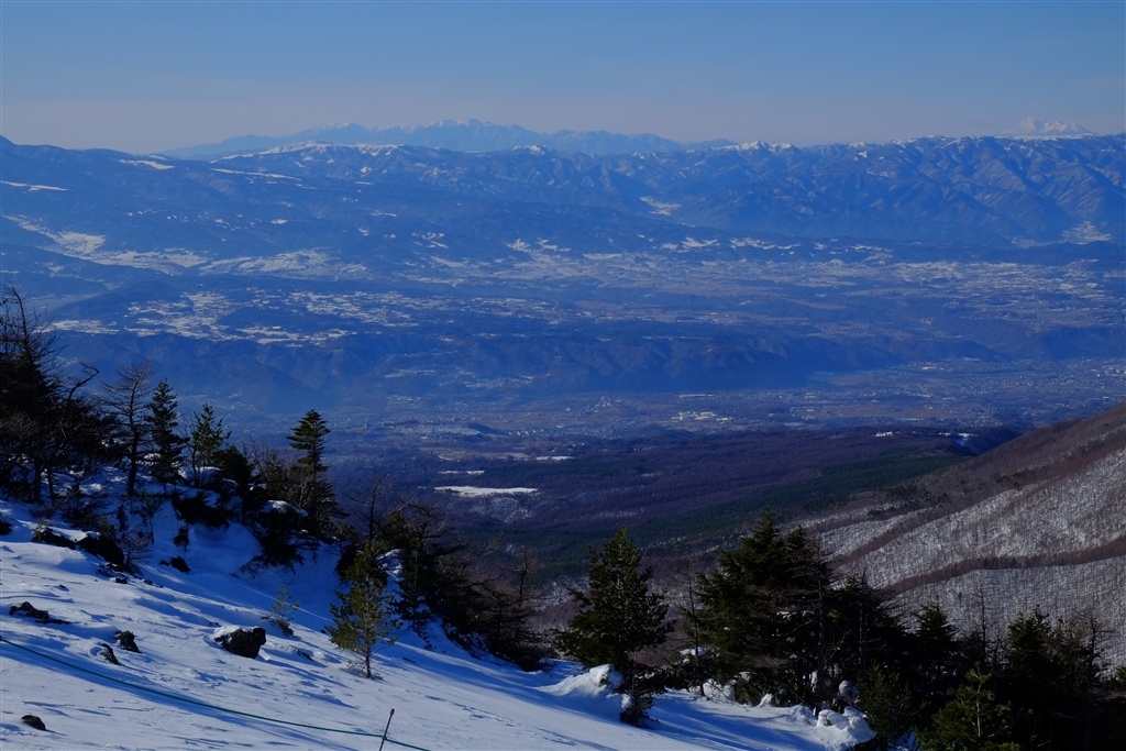 眼下は千曲川、正面中央アルプス、右端御嶽山