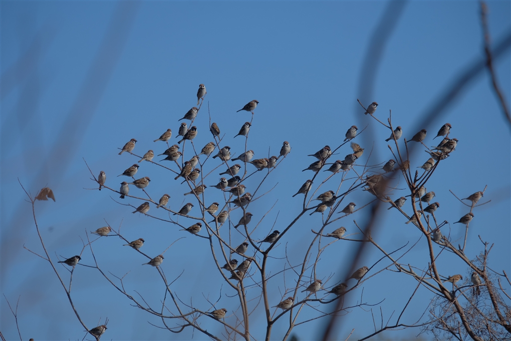 川沿いの道を通ったらスズメが沢山いました