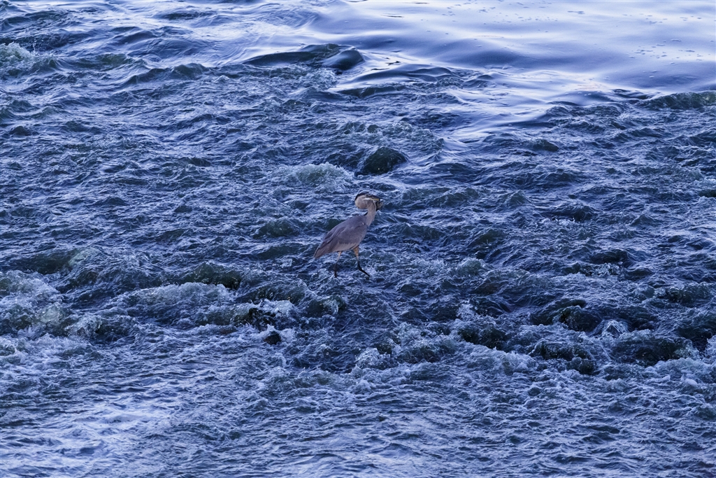 オオアオサギ、ナマズを一突きで仕留めるの図