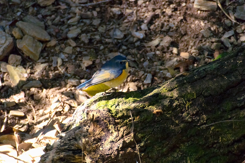 半日陰にルリビタキが止まっていました。この鳥いい雰囲気をしていますね。