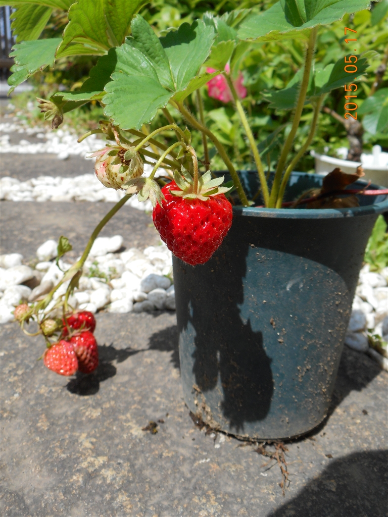 我が家の庭の ミニミニ イチゴ農園 です。