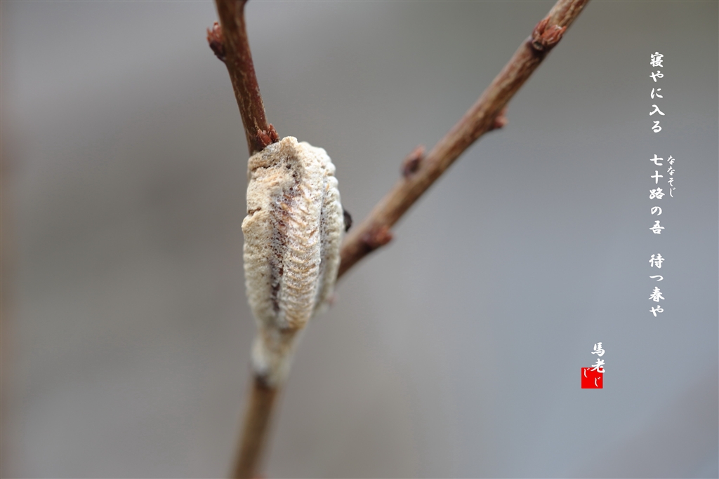 カマキリの卵だと思うのですが・・・姫桜の枝に