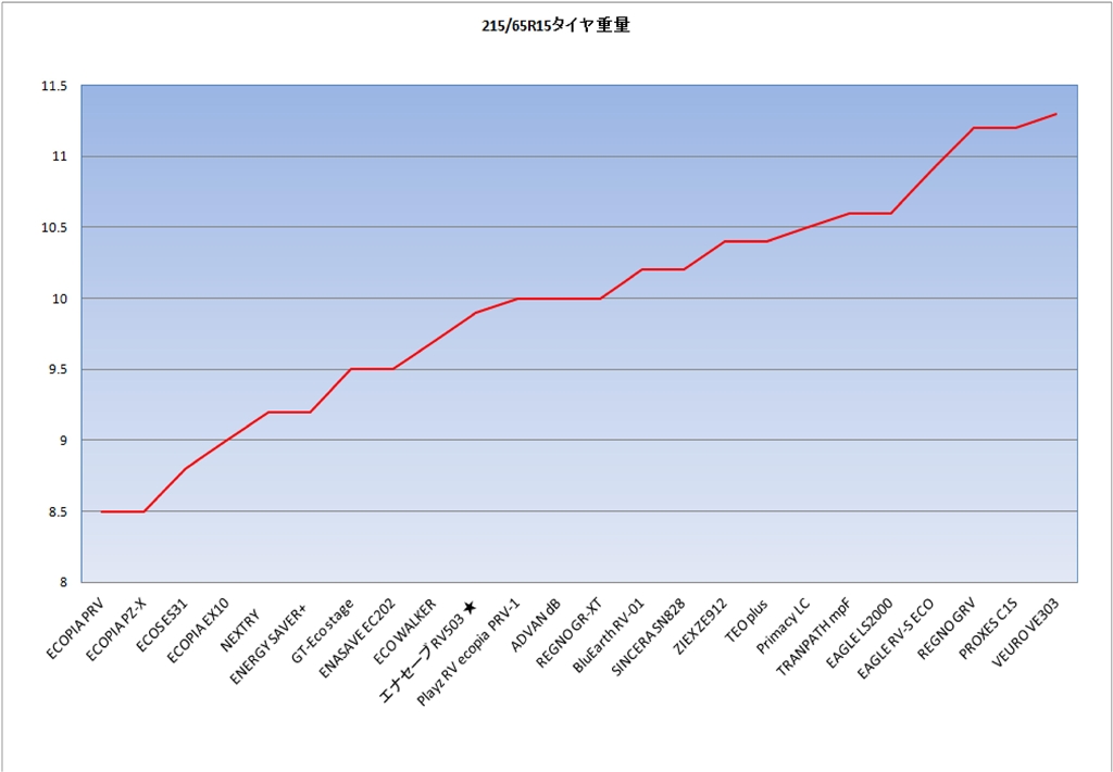 215/65R15タイヤ重量