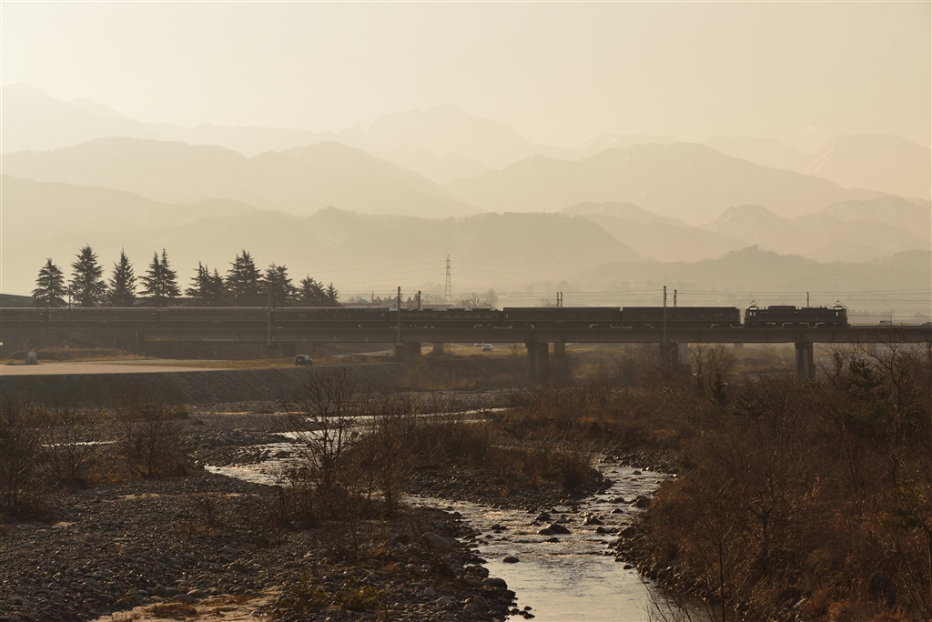 朝の早月川橋梁。天気予報がいい方向に覆ったおかげか同業者は1人だけ。。。