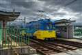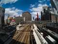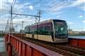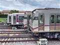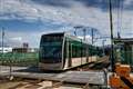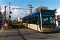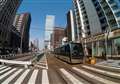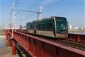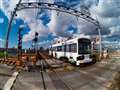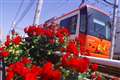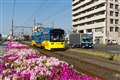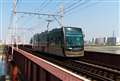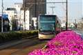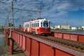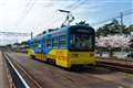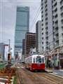 1枚目 阪堺軌道 堺トラム"青らん"と"あべのハルカス"