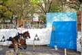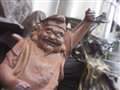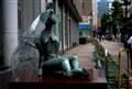 傘とブロンズ像の写真、とても良いですね。