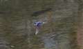 撮影したときにレンズの距離目盛を見ると0.2mほどでした。カメラの撮像面からレンズの先までの距離は約14cmなので、レンズの先から6cmほどのところを飛んでいたのを撮ったことになります。