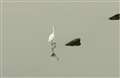 飛行機でも車輪を引っ込めますが、飛ぶのが下手?なセスナは車輪を出したまま飛んでいますね。鳥も巡航速度で飛んでいるときは脚を折り畳んでいるか、まっすぐに後ろに伸ばしていますね。サギなどは後ろ伸ばしの飛翔スタイルです。