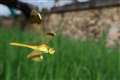 ウスバキトンボと名付けられているのは、薄い丈夫な翅を持ち黄色い体をしているからで、飛翔能力があってほとんどずっと飛びっぱなしです。全長が5cmほどのやや小型のトンボで、ホバリングしてくれないので、撮るのが厄介です。