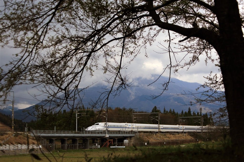 伊吹山をバックに桜開花時期を狙っていたのですが残念。。。特にドクターイエロー