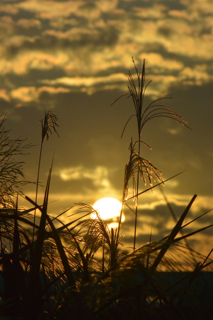 朝焼けのススキ