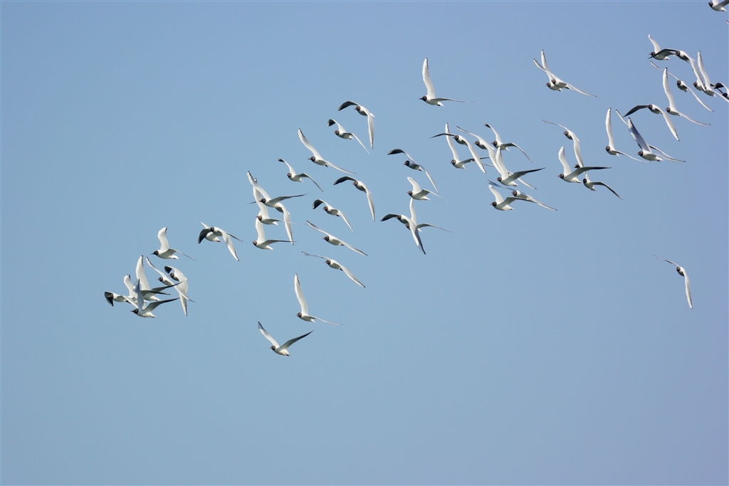 この時期ユリカモメは黒頭巾をしています