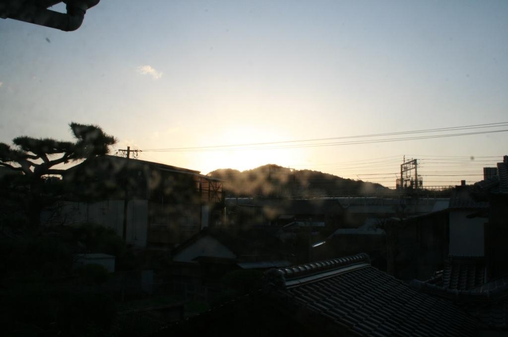 朝日の山影