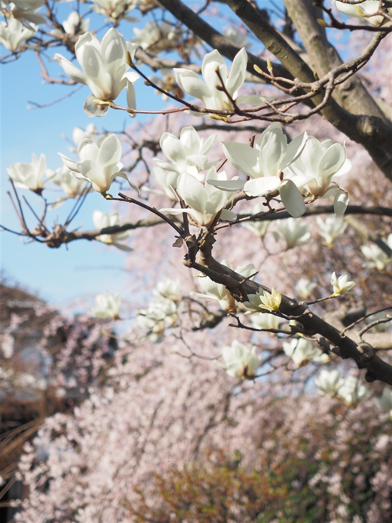 白木蓮と枝垂桜