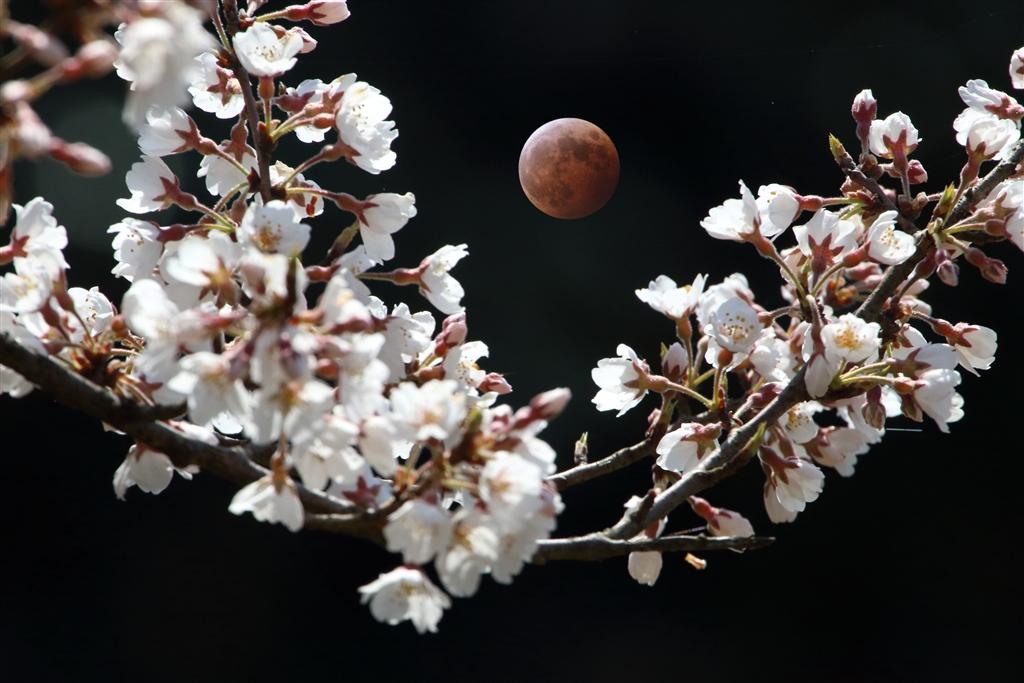 エドヒガンに赤い月