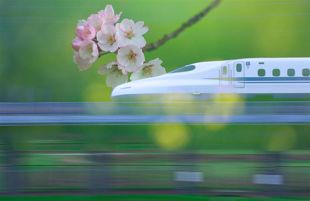 桜と新幹線車両