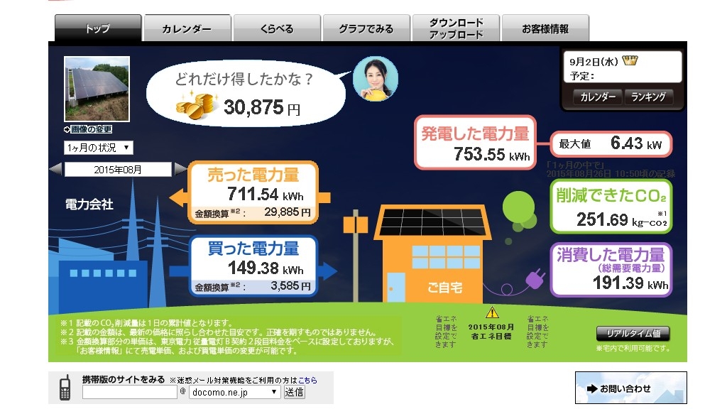 『家庭用5.44kW CISシステム発電量 2015年8月分.jpg』 太陽光発電 ソーラーフロンティアすべて CIS愛好家さんのクチコミ掲示板画像1/1