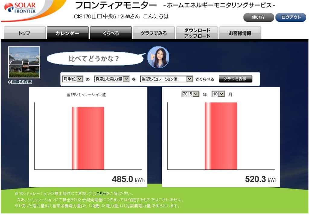 『2015年10月の当初シミュレーション値でくらべる』 太陽光発電 ソーラーフロンティアすべて gyongさんのクチコミ掲示板画像1/1