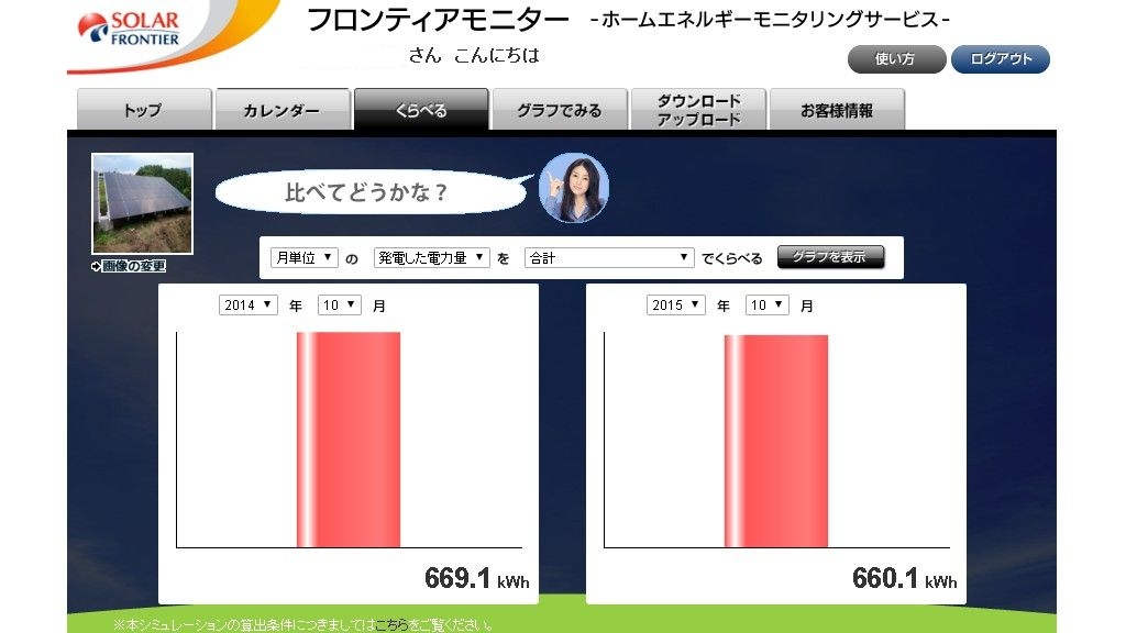 『昨年10月(31日分)と今年10月25日現在まで分の比較』 太陽光発電 ソーラーフロンティアすべて CIS愛好家さんのクチコミ掲示板画像2/2