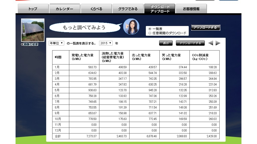 今年の10月の発電量実績表