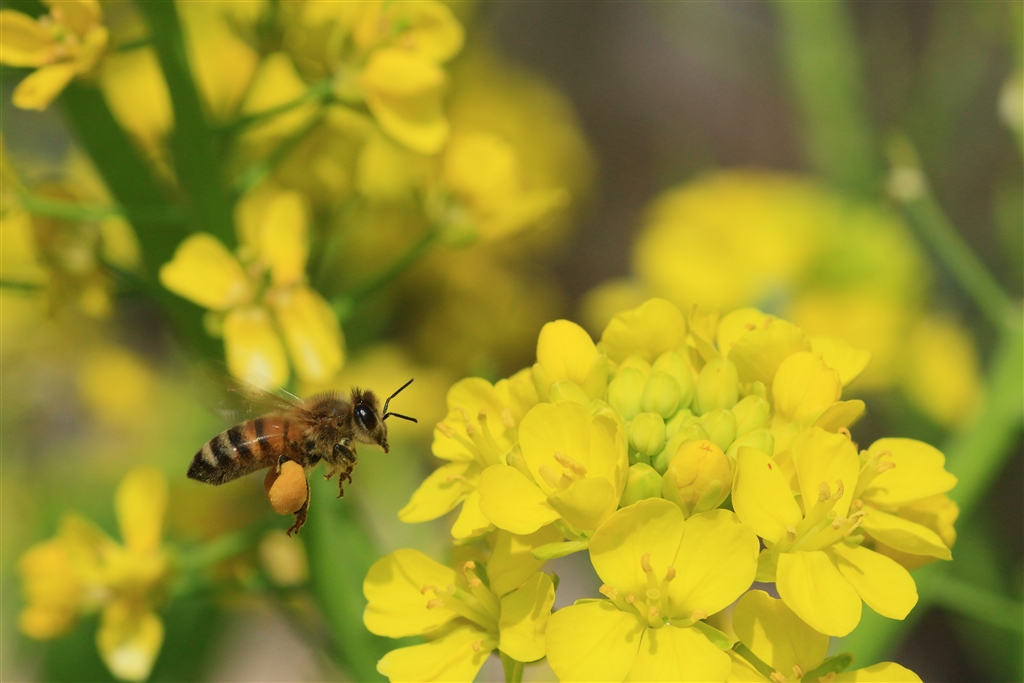 ミツバチの目線(周りは真っ黄色^^)