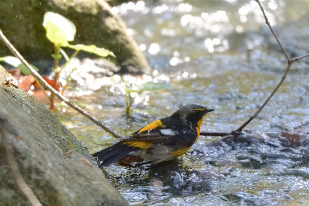 水浴び中のキビタキさん