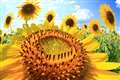 ヒマワリを一本だけ手で持って上向きに