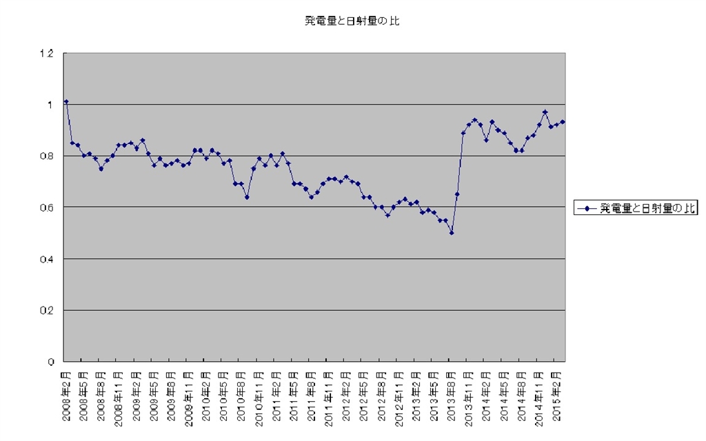 『発電日射量比のグラフ』 太陽光発電 ソーラーフロンティアすべて 槍騎兵EVOさんのクチコミ掲示板画像1/1
