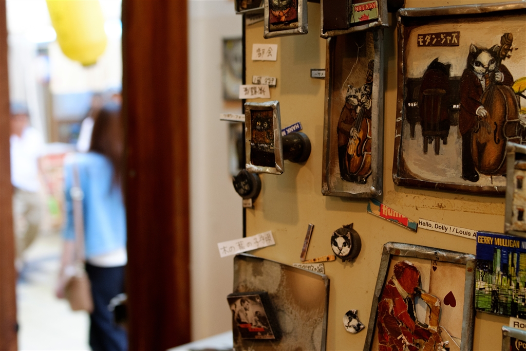 新世界のジャンジャン横丁にある、ジャズが流れる猫のオブジェなどを売っているお店