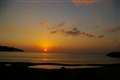 >足摺岬からの夕日は海に沈むものと思っていましたが、九州の山に邪魔されました。