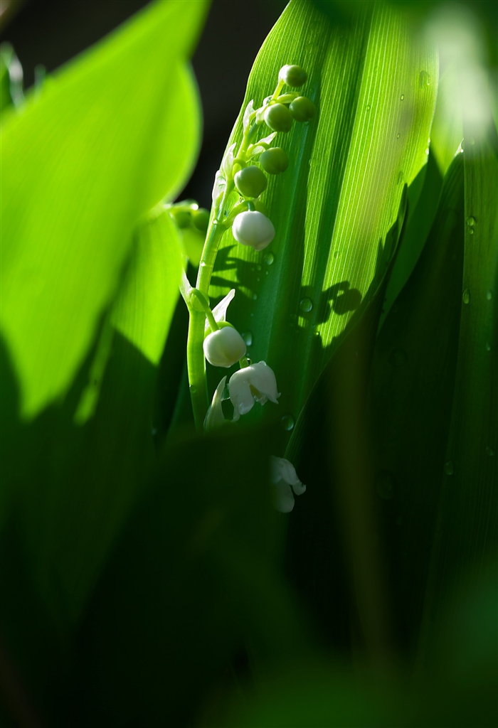 葉っぱに鈴蘭の花の影が 100Lマクロ