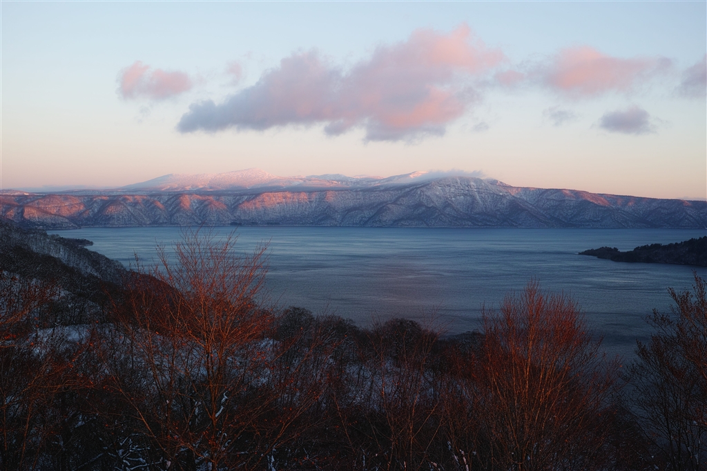 十和田湖ですが、これ以上は赤くならず 遠景の山は八甲田