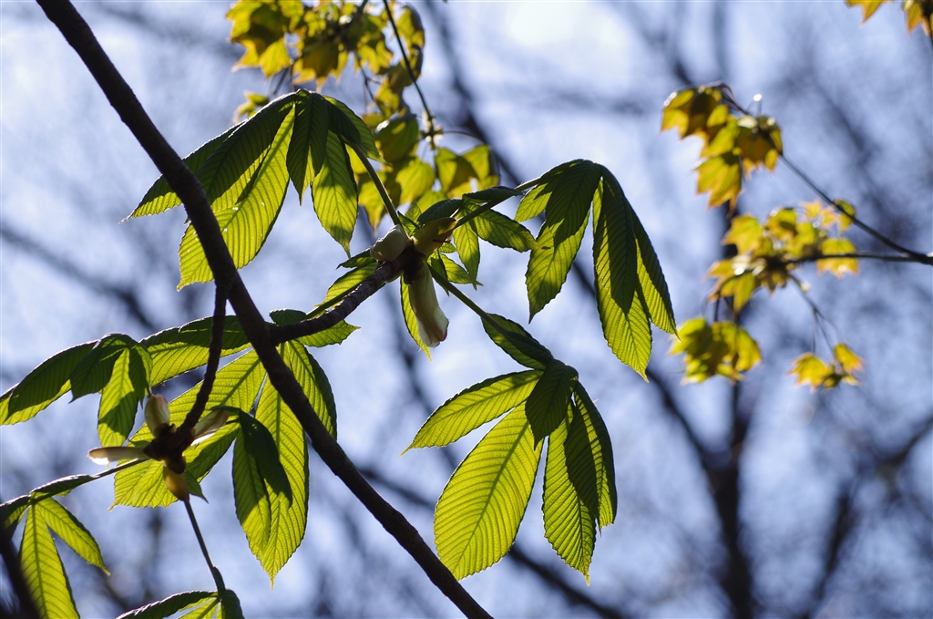 見上げると葉っぱ