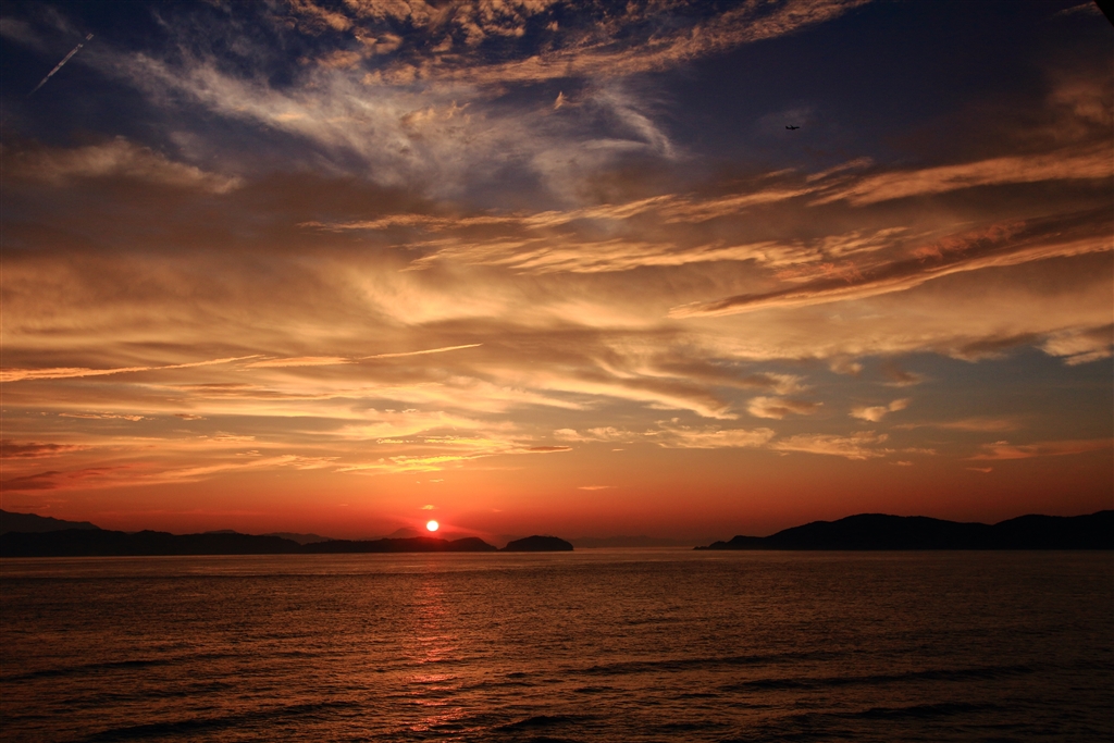 写真2:代表的な夕陽の光景写真で、撮影場所と気象条件が決め手になる