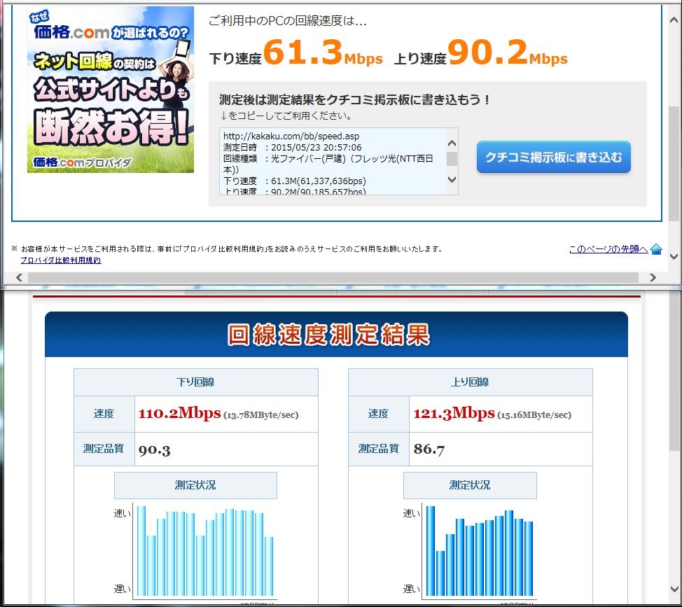 スピードテスト(光ファイバー) アテゴン乗りさんのクチコミ掲示板画像1/1
