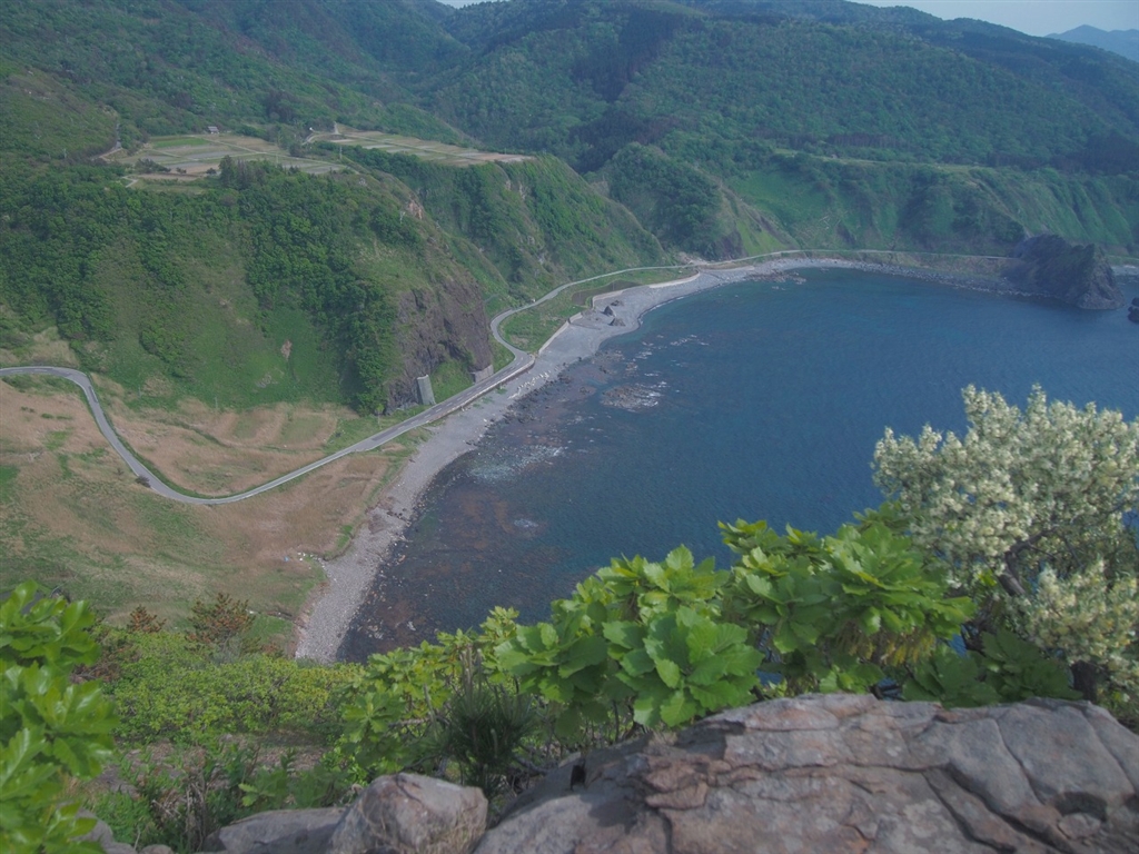 大野亀の背中より崖上の隠し田? (標高167mの1枚岩、佐渡)