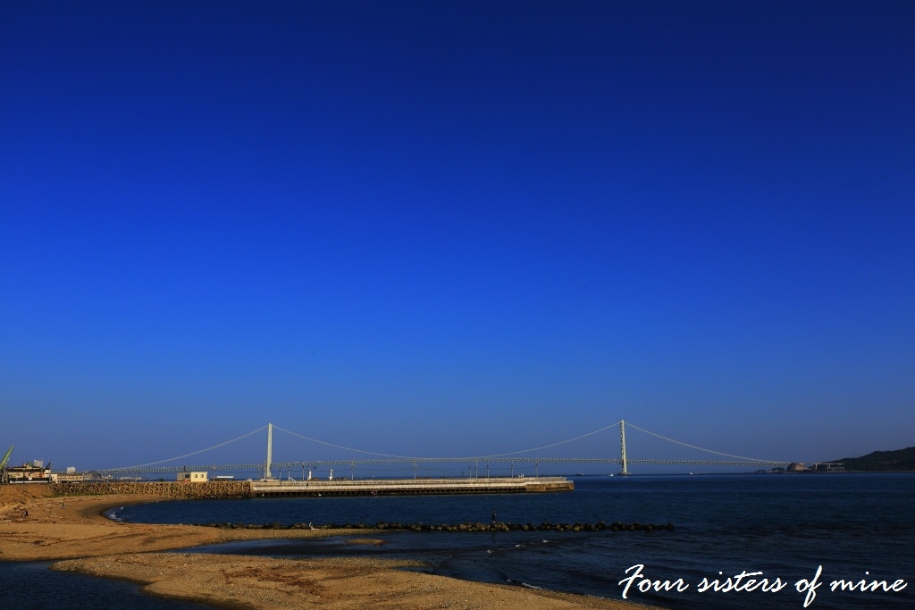 明石川から望む明石海峡大橋