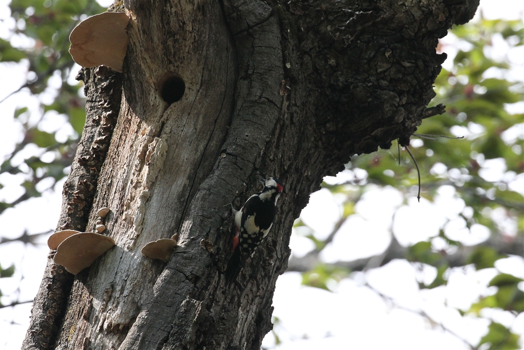 以前から見つけていたアカゲラの巣に♂のアカゲラが