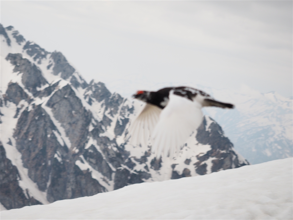 連写4枚目 ほぼ中央に雷鳥がいるのにピンボケ風