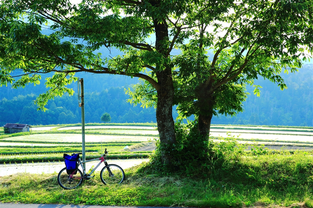 「里山旅情」 外人さんが自転車ツーリングを楽しんでいました。