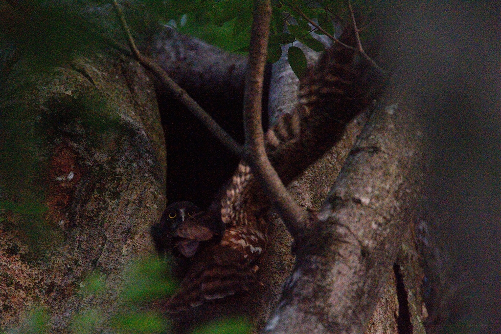 お母ちゃん、ご飯を持って(たぶん)チビちゃんの待つ巣穴に着地。