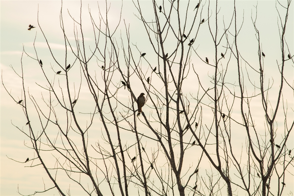 小鳥に囲まれるノスリン・・・。