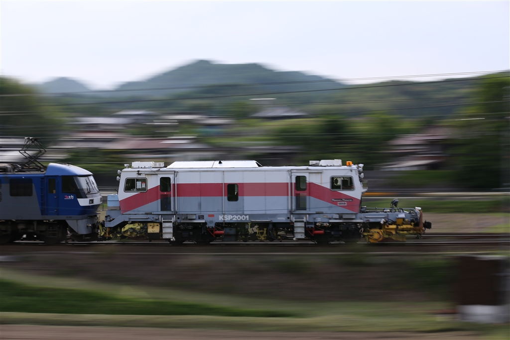 EF210の牽引で道床安定作業車